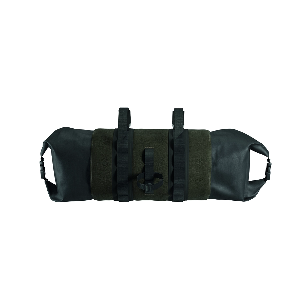 Brooks Scape Handlebar Roll -tankolaukku koostuu tankoon kiinnittyvästä rullasta ja sen sisälle tulevasta vedenpitävästä pussista, jossa on kaksi erillistä osastoa tavaroillesi. Bikepackingin perusperiaatteiden mukaan tankolaukkuun on hyvä pakata kevyttä tavaraa, kuten esimerkiksi vaatteita. Vedenpitävän kuljetuspussin ansiosta vaatteesi pysyvät kuivina ja lisäksi niihin on helppo päästä käsiksi tarvittaessa.