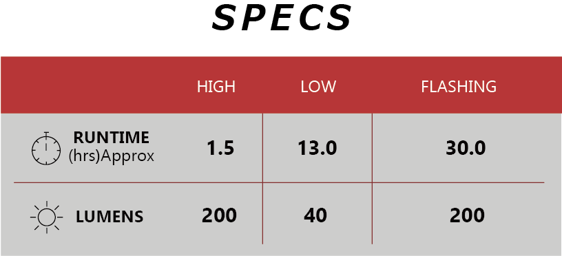 - Kolme valomoodia (korkea / matala / vilkku)