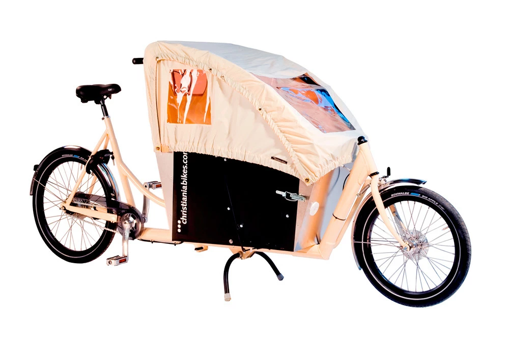 Christiania biken klassiseen Long-John malliin perustuva kaksirenkainen lastenkuljetuspyörä.