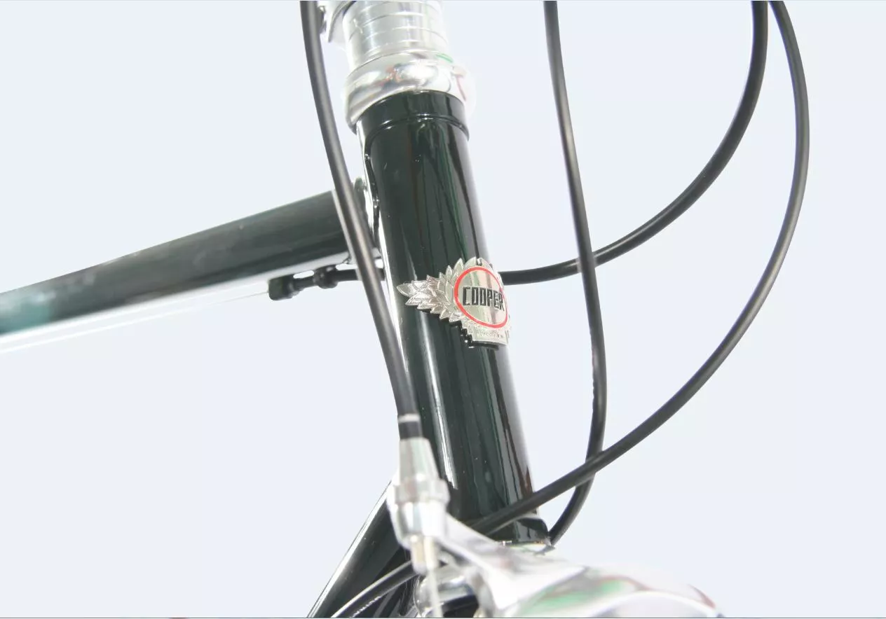 Reynolds:n tuplaohennettu, käsin juotettu ja komeilla muhveilla täydennetty teräsrunko on viimeistelty tumman vihreällä British racing green värillä, täysin sama jolla Cooper muutama kisa-auto ja legendaarinen varikkoautokin oli maalattu.