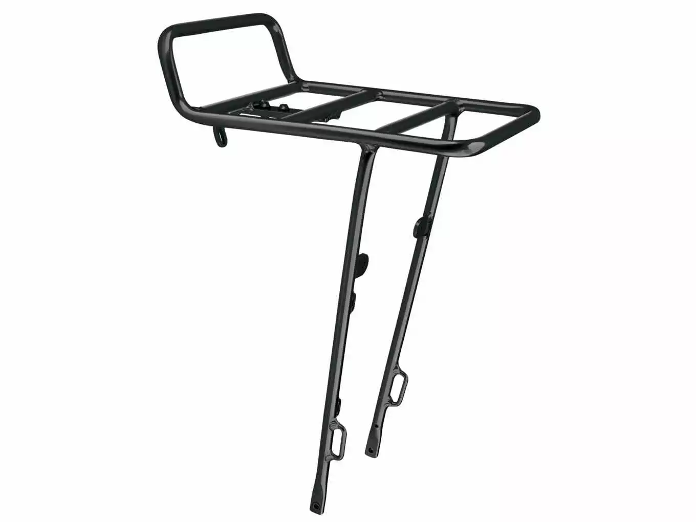 Tämän pyörän etutelineen kiinnitys on etuhaarukan korvakeisiin ja lokasuojan / jarrun kiinnikkeeseen, teräksiset kiinnikket mukana