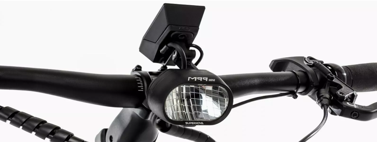 Nopea sähköpyörä vaatii myös kaikkein kirkkaimmat etuvalot. Supernova M99 MINI on ehdottomasti paras ja arvostetuin valo jonka voit vakiona pyörääsi saada. Vaativan Saksan StVZXP mukainen valo valaisee jopa kaikkein pimeimpinä öinä tien ja maaston laajalti ja pitkälle, näin tuoden ajamiseen turvallisuutta. 10 kpl autoteollisuuden ledvaloa tuovat 1150 Lumen ja 260 Lux. Lue lisää Supernova M99 valoista tästä linkistä