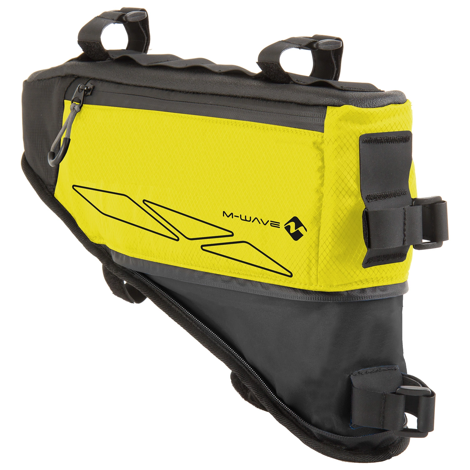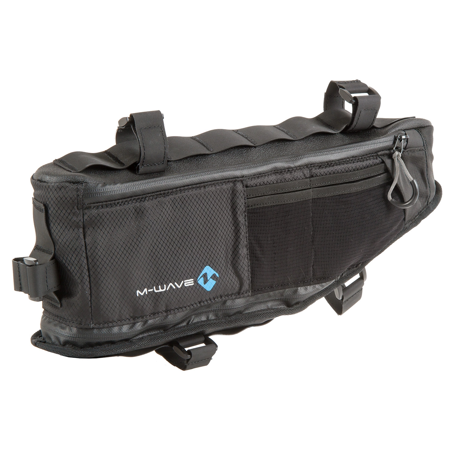 M-wave Rough Ride bikepacking runkolaukku ei vaadi pyörältäsi mitään erityisiä kiinnikkeitä, vaan kiinnitys tapahtuu velcro-nauhoilla pyörän keskikolmioon. Keskikolmioon asennettava laukku on hyvä paikka painavammille retkitarpeille, kuten ruuanvalmistusvälineet, pyörätyökalut, telttakepit, isommat vaatteet jne. Vedenpitävän sisäkankaan ansiosta retkitarpeesi pysyvät kuivana, vaikka taivaalta tulisikin hiukan vettä tai räntää. Laukun kokoa on mahdollista säätää vetoketjulla toimivan laajennusosan avulla.