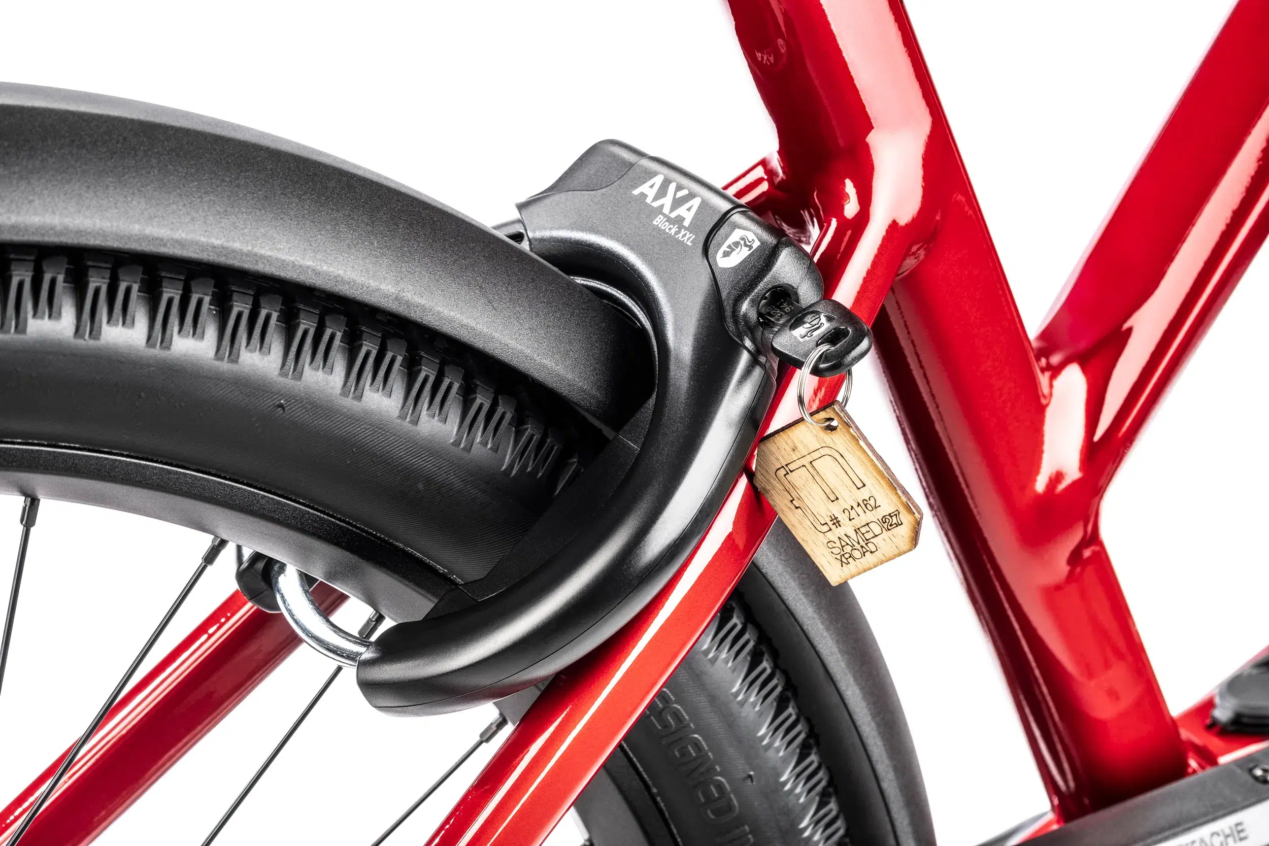 AXA runkolukko on aina toimintavarma ja siihen käy sama avain kuin akkuunkin.