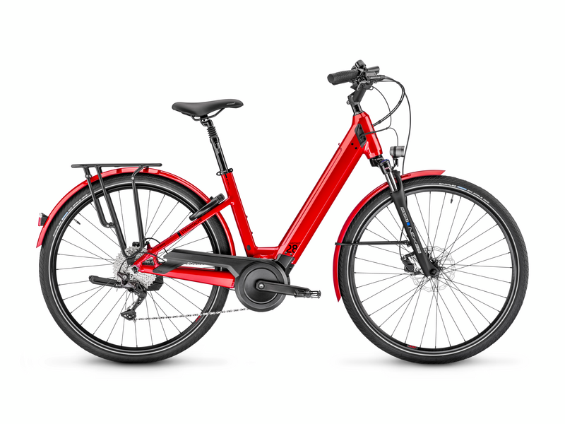 Moustache Samedi 28.5. on tyylikäs j akevyt sähköpyörä jonka sähköavustuksesta vastaa luotettava ja pitkille matkoille sopiva Bosch Performance Line – moottori.