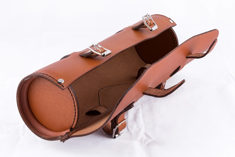 Käsintehty nahkainen ohjaustankolaukku ”pullolaukku”, perinteistä ja erittäin lasadukasta Englantilaista käsityötä erinomaisesta nahasta.