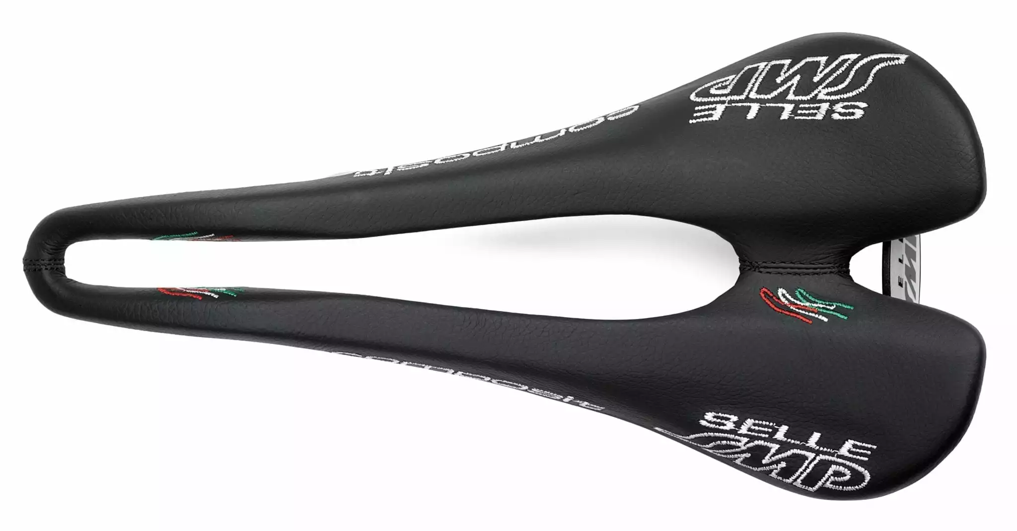 Selle SMP Composit ergonominen MTB ja maantiepyöräily satula – ilman toppausta, mutta siitäkin huolimatta aivan yllättävän mukava! Et välttämättä tarvitse edes topattuja ajohousuja. SMP4Pro sarjan pehmustamattomat satulat ovat ne, joissa SMP satuloiden muotoilun oivallisuus tulee ehkä parhaimmalla tavalla esille. Kun satula on muotoiltu ergonomisesti ja kuskille mukautuvaksi, ei pehmustetta välttämättä tarvita. Muodoltaan ja leveydeltään Selle SMP4Pro kapeaan tuoteperheeseen kuuluva Composit istuu parhaiten kuskeille, joilla on keskikokoinen-kapea lantio. Composit sopii todella hyvin esimerkiksi aktiivikuskille maantieajoon. Saatavilla myös hiilikuitukiskoilla, mikäli tavoitteenasi on viilata ne viimeisetkin grammat!