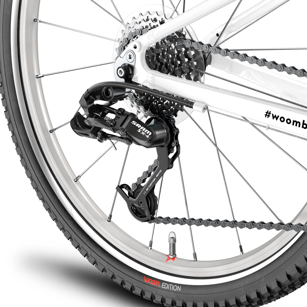 Woom pyörien pitkä akseliväli ja erittäin anteeksi-antava ajogeometria luovat erinomaisen tasapainon sekä tuovat ajoon vakautta ja luotettavuutta.